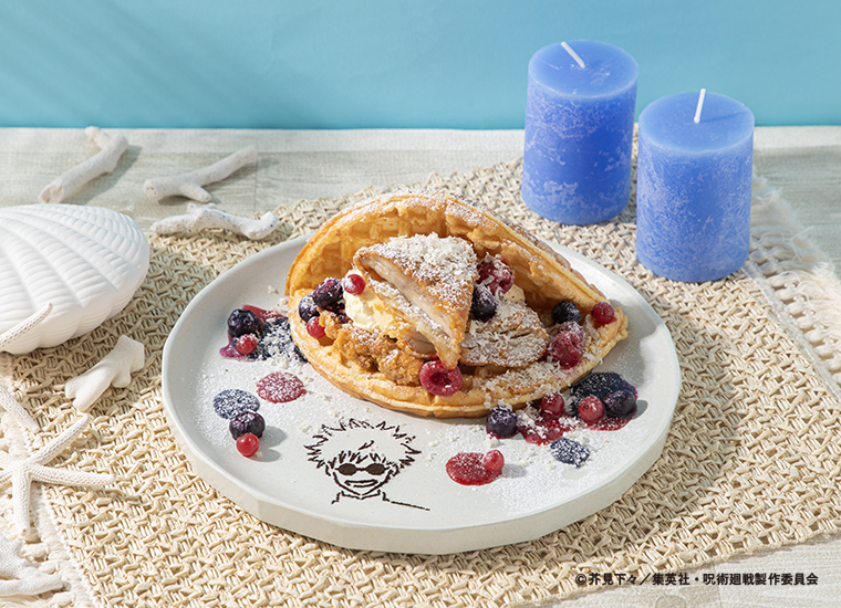 カフェではテレビアニメ第2期の「懐玉・玉折」 編をテーマに展開。作中の印象的なシーンや五条悟、夏油傑、 家入硝子、七海建人、灰原雄、 伏黒甚爾をイメージしたフードやデザート、 各キャラクターにちなんだドリンクなどを用意する。このほか、 新規イラストを使ったオリジナルグッズや特典も用意する。