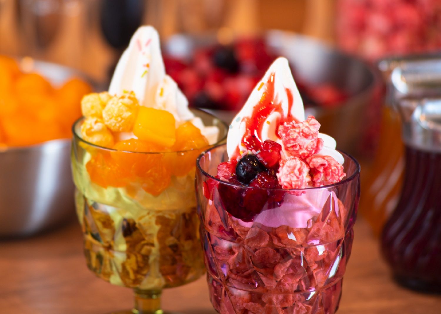 「ドリンク&パフェバー」(429円)を設け、 アイスクリームにポップコーン、 果物などを乗せてオリジナルのパフェを作ったり、 食べ放題メニューをアレンジしたデザートを作ったりできる。