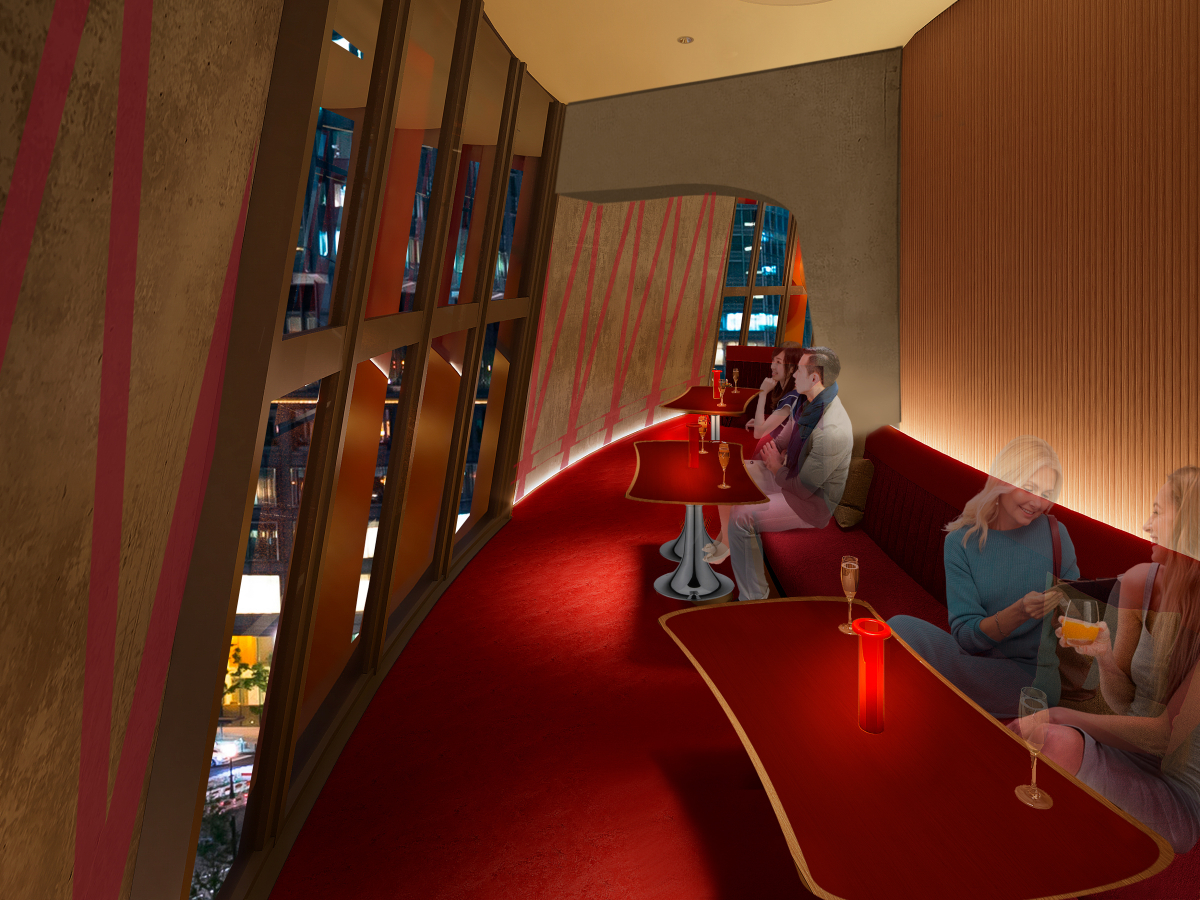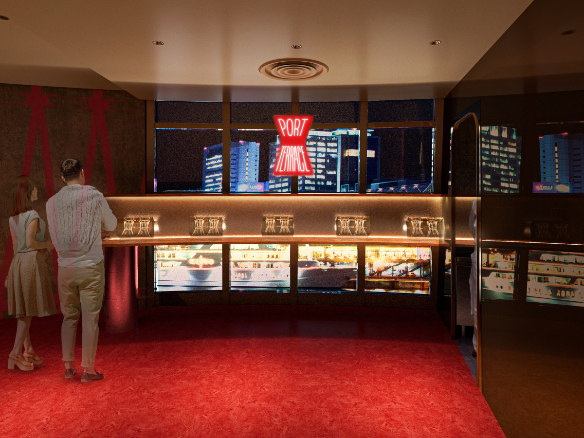 ポートタワーが生まれた時代のムーブメント「 ミッドセンチュリーデザイン」の名作家具を使い、 新たに作るものも当時のデザインへのオマージュをいれながら、 現代の素材や加工方法とミックスさせるなど、 懐かしさと新しさが融合した空間を目指す。