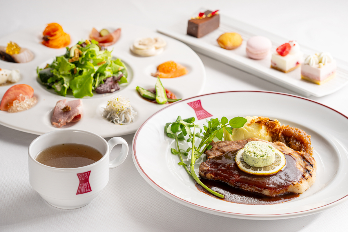 料理のテーマは「レトロ洋食」で、ハンバーグやエビフライ、 カツレツなどの洋食メニューを北野クラブ ソラの料理長がプロデュースする。 スイーツは兵庫県産フルーツや加古川の「日本一こだわり卵」 を使ったプリンアラモード、パンケーキなどをラインナップ。 アフタヌーンティーセットも用意する。