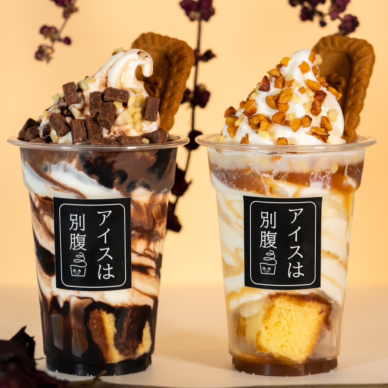 当時大学4年生だった双子の岡本拓也・直也さんが2021年11月、姫路に夜パフェ専門店「アイスは別腹」1号店をオープン。コロナ禍で大学の授業が休講やオンラインになり、自由になった時間を活用し、コロナで落ち込む地元や大学生を飲食の力で盛り上げたいと考えスタートした。現在はFC含め17店舗を展開する。