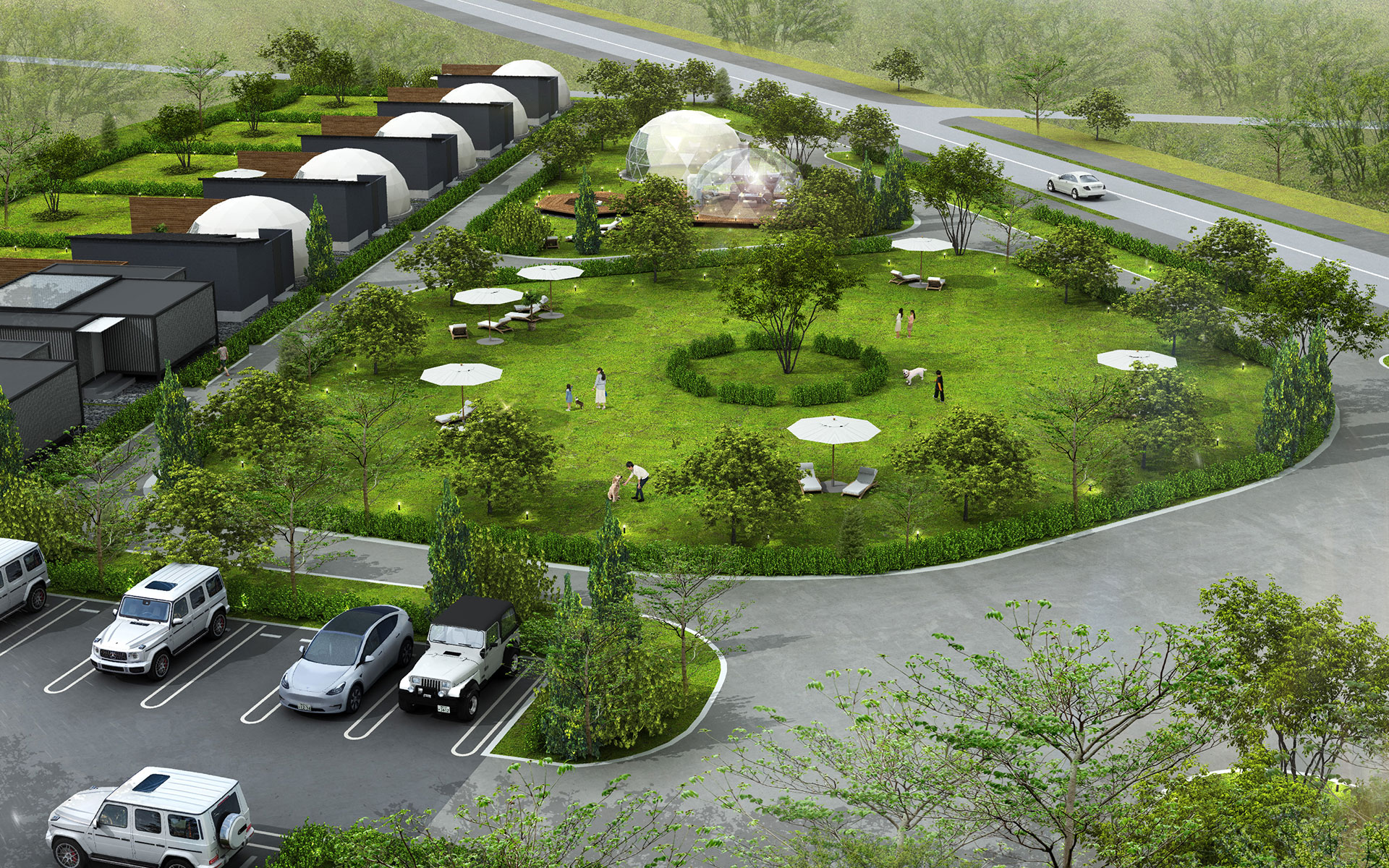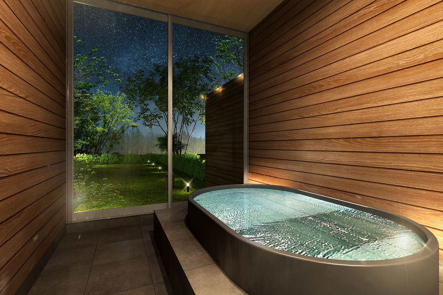 全7棟で構成。各棟にプライベートドッグランと天然温泉を完備し、ぜいたくな空間を演出する。愛犬用アメニティや無料レンタルグッズのほか、ウェルカムトリート、愛犬用のごはん(1,650円~)やケーキなどを用意する。雨の日には直径7mのドームテントを時間貸しで案内する。 共有スペースには焚き火スペースと透明ドームでのセルフサービスのナイトバーを設置。ビール、ワイン、ハイボール、レモンチューハイ、ソフトドリンクなど、オールインクルーシブで提供する。