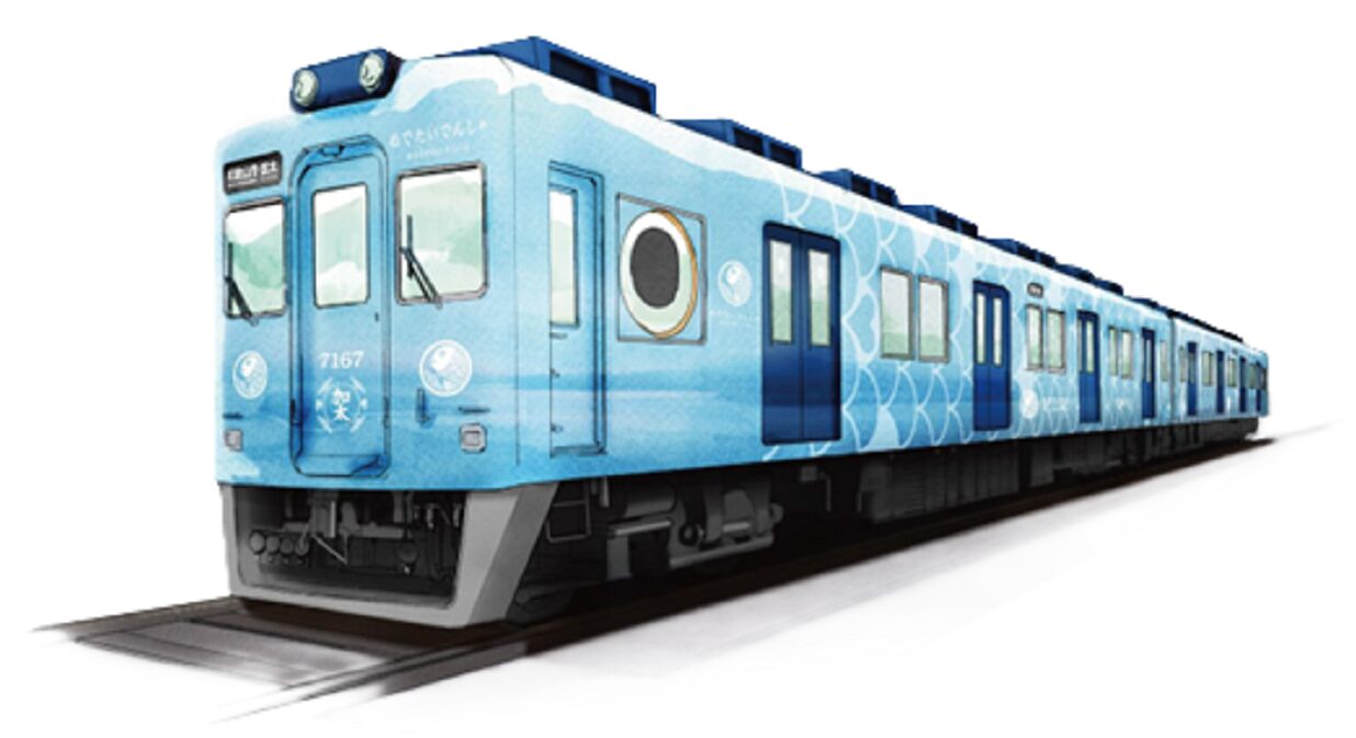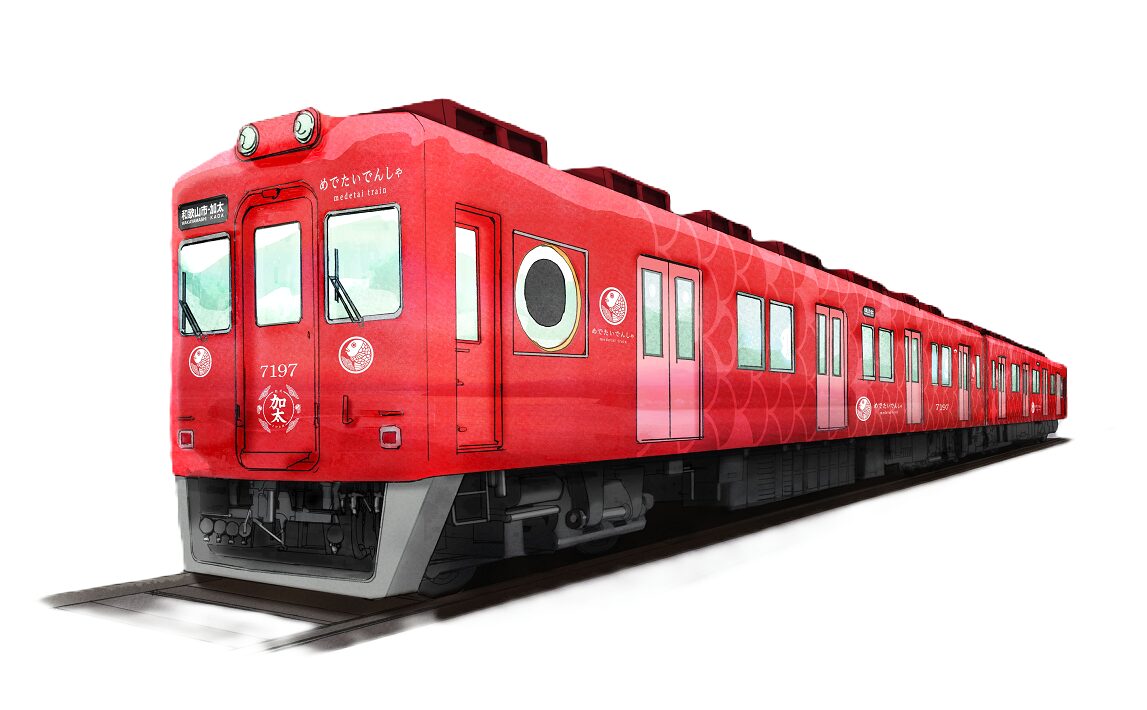 加太線を走る列車に7月13日、「めでたいでんしゃ」