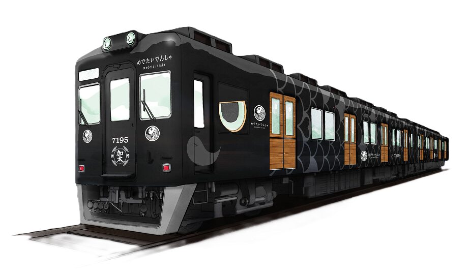 南海電鉄と加太観光協会、 磯の浦観光協会が加太線沿線の魅力を発信しようと取り組む「 加太さかな線プロジェクト」の一環。 加太線の代表的な海の幸が鯛であることから、 鯛のイラストをデザインしたラッピング列車を2016年から走ら せている。